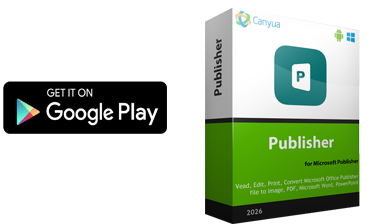 Publisher App can easily export as image, PDF, Microsoft Word andPowerPoint if you want to convert your MS Publisher document, moreover you also can easily print your MS Publisher document.