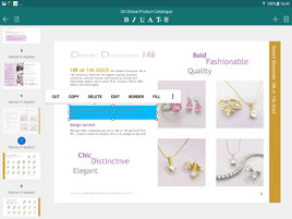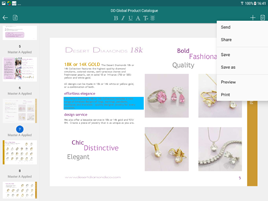 Publisher App has full compatible object library with MS Publisher, you can easily edit MS Publisher object with same object style settings. Publisher App supports the text, shape(rectangle, round rectangle, oval, triangle, parallelogram, trapezoid, diamond, pentagon, circle, arrow, star, line, line with arrow, dashed line, curve, scribble, etc.), picture, table editing, and also allows you insert new text, shape, picture and table. Just like MS Publisher object format window, Publisher Expert also has a similar object format window, you can easily format these objects, change text font, color, border, fill and rotation, change picture, table, shape, border, fill and rotation. The table element has same presets style with MS Publisher table object. You can easily cut/copy/paste object, reorder and duplicate page, set page background, and so on. Bring to front and send to back object, so that you can rearrange these elements. All of these will be very convenient for your editing.
